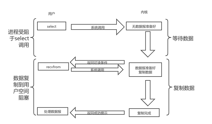 等待数据阶段 - 内核已经接收到远端数据。内核需要复制数据到用户空间,在复制过程中会阻塞在