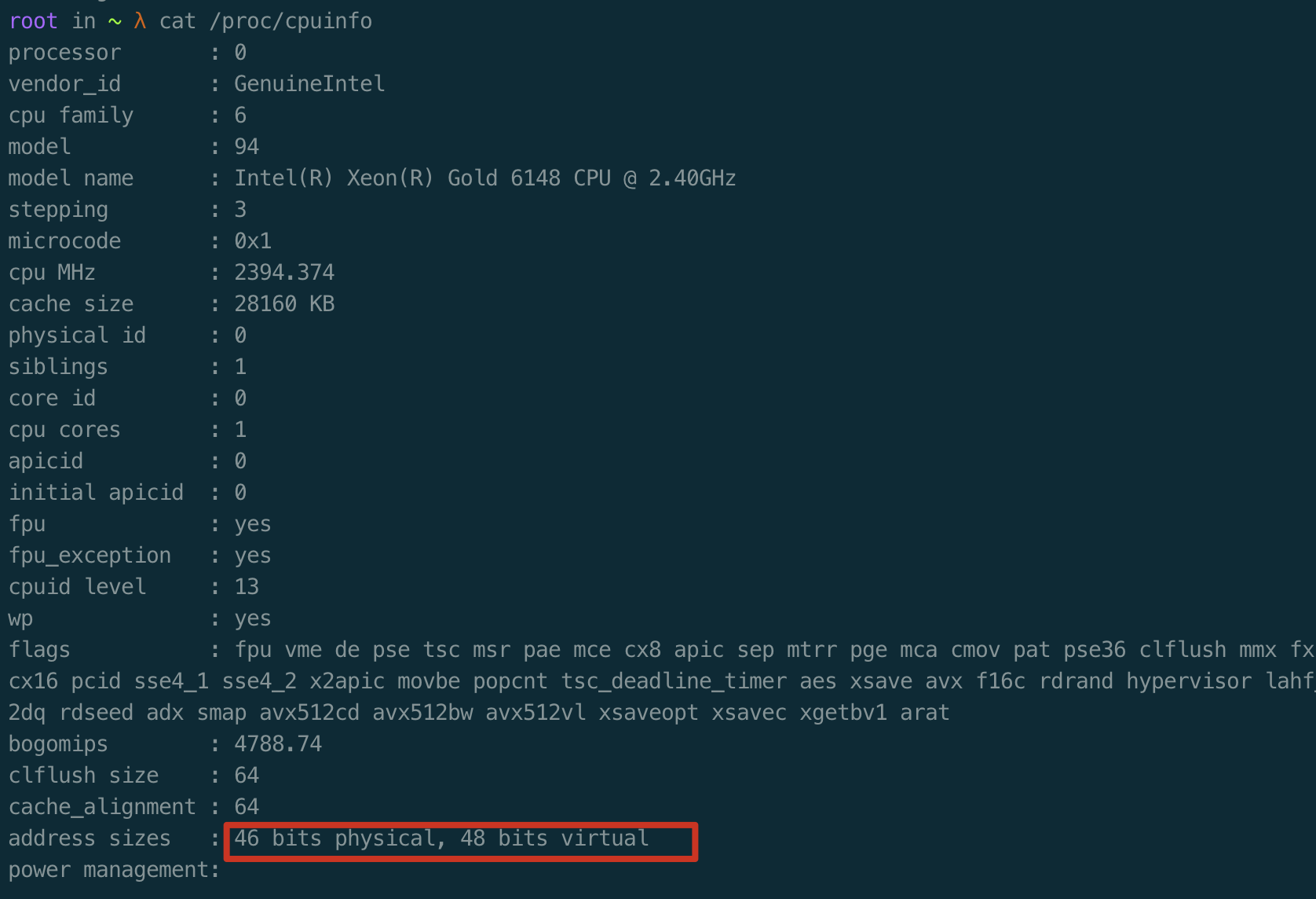 1 | root in ~ λ cat /proc/cpuinfo |